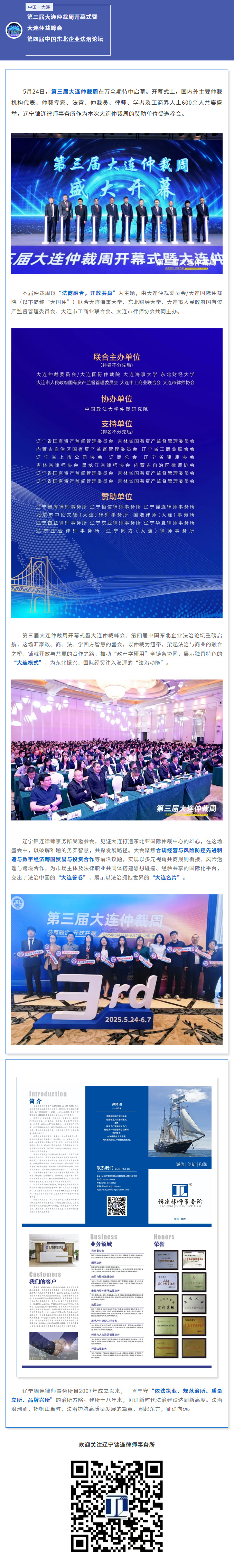锦连动态||辽宁锦连律师事务所受邀参加第三届大连仲裁周开幕式