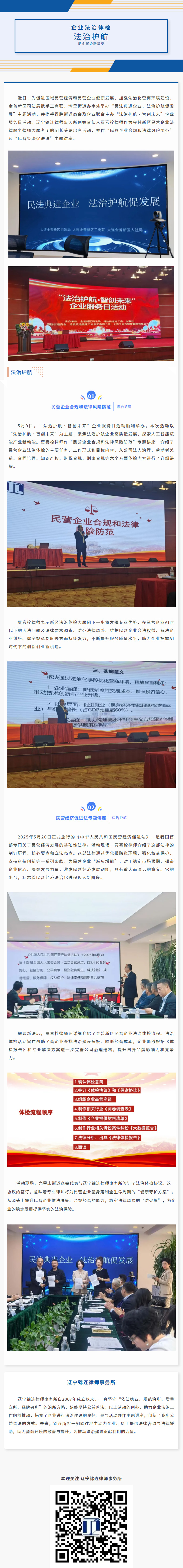 锦连动态||辽宁锦连律师事务所受邀开展“民营企业合规和法律风险防范”及“民营经济促进法”主题讲座