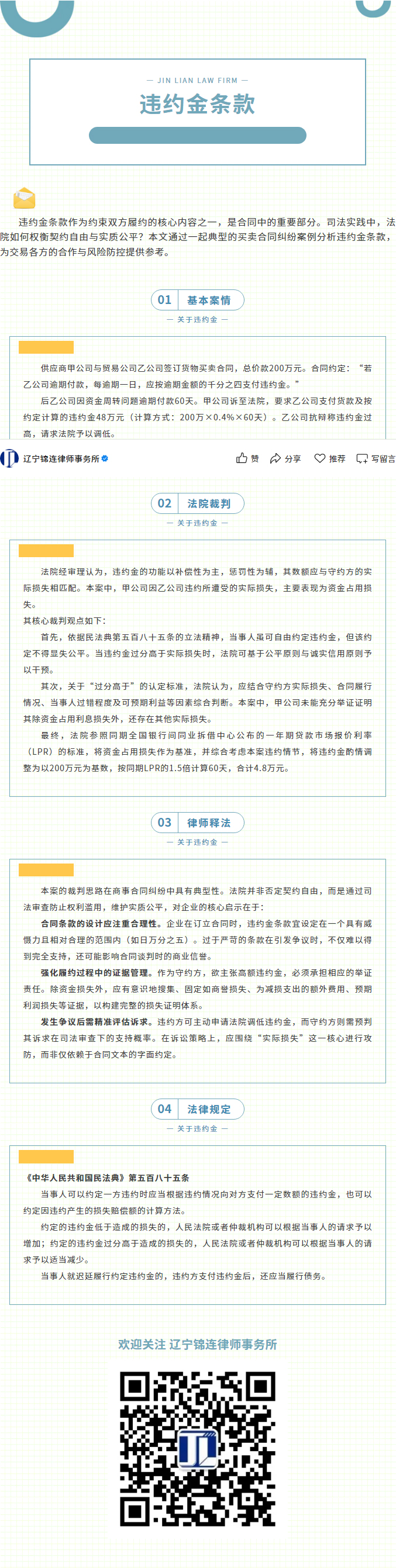 锦连普法||合同约定“天价”违约金,为何法院不予支持?