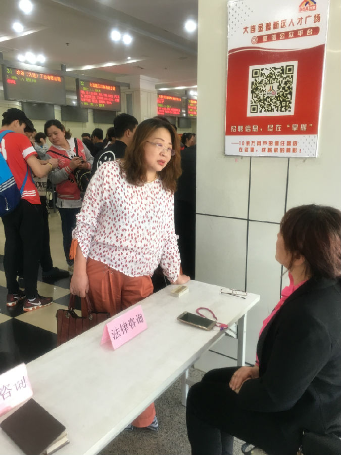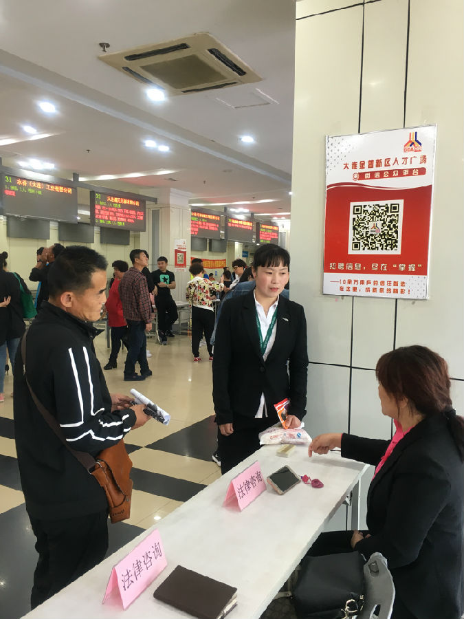第一,与金普新区政法委携手合作,在招聘会现场提供专业的法律咨询援助服务,为参会的残疾人解答在用工过程中与用人单位发生的各种法律问题。来自我区锦连律师事务所的两位资深律师现场解答了十余名残疾人求职者提出的关于劳动合同法等其他事项的法律咨询,受到了残疾人的一致好评。来自我区光明街道的一名残疾人在咨询后,发出由衷的感慨:“真没想到今天有这么好的机会,可以面对面跟律师咨询,堵在心里好几个月的糟心事儿,现在我可算是知道该怎么办啦!”