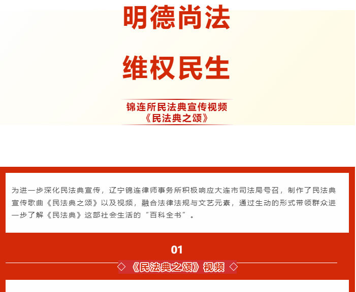 锦连十五载||明德尚法 维权民生——锦连所推出民法典宣传视频《民法典之颂》